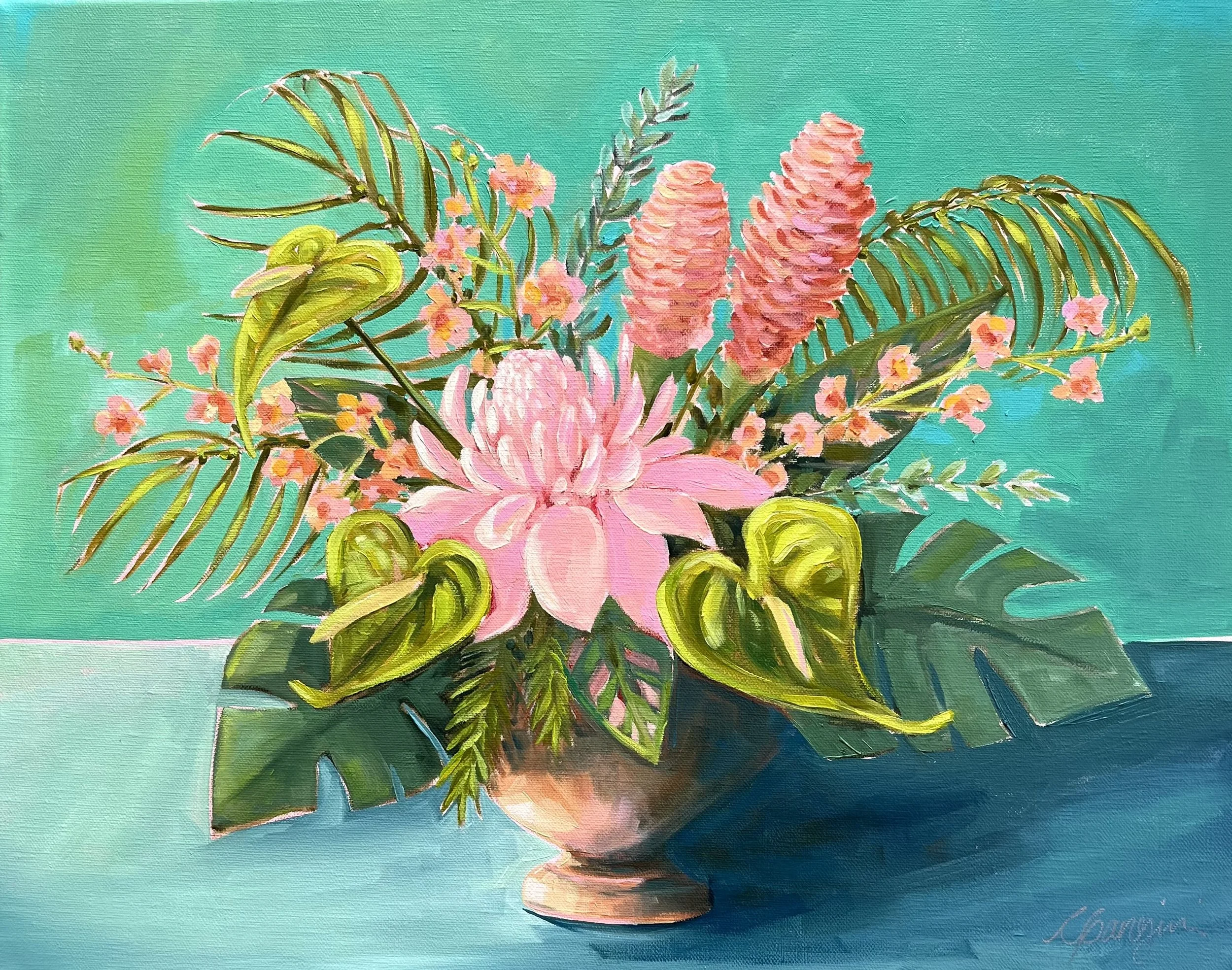 In 1990, I moved to Maui, met my husband, and we've now been married for 34 wonderful years. While raising our daughters, I found ways to keep my creative spirit alive—whether it was crafting with shells I’d collected, decorating our home, or occasionally finding time to paint. Once our daughters were grown, I took an oil painting class at the Hui No‘eau, and I’ve been hooked ever since. Though I enjoy working with different mediums, there’s something about the painterly process of oils that feels like home to me.